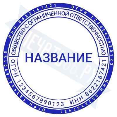 - Печать ООО стандартная на металлической оснастке Леон-магнит/кожа D42, 42мм по цене 2797 рублей и еще 69 видов стандартных печатей